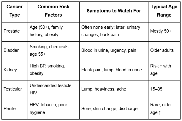 This article will help you understand the early signs of urological cancers. You will also learn risk factors, screening guidance, self-checks, red-flag scenarios, and healthy habits that may lower future risk.